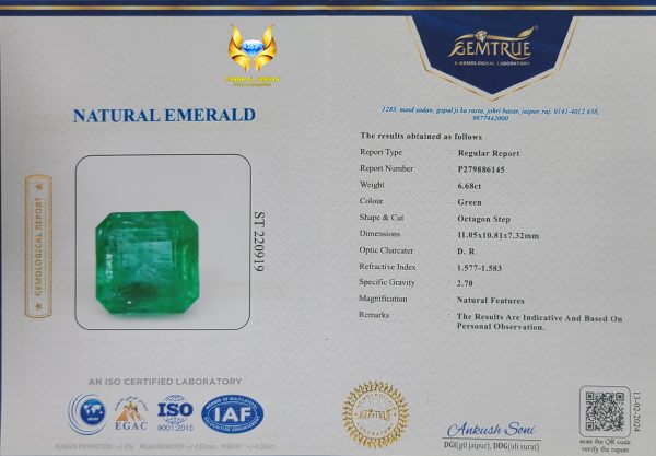 Natural Emerald Gem 6.68ct